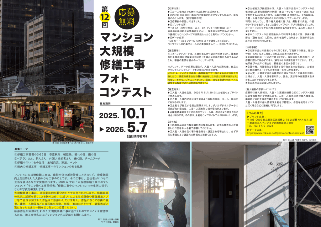 第12回マンション大規模修繕工事フォトコンテスト 募集チラシPDF ダウンロード